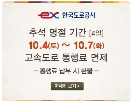 이번 추석, 고속도로 통행료는 0원!
