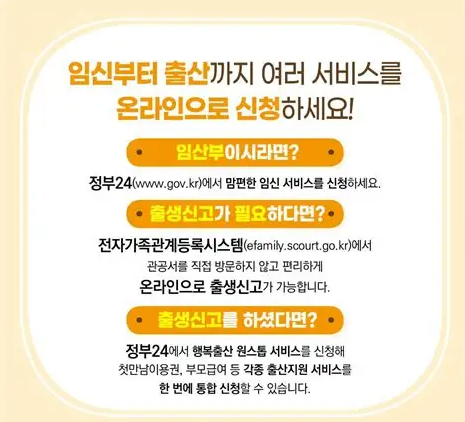 - 신청 시기: 출산 예정일 40일 전 ~ 출산 후 30일 이내