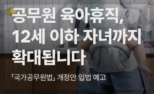 이로써, 초등학교 고학년 자녀가 있는 공무원도 육아휴직 신청이 가능해졌습니다.