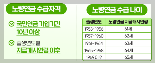 - 국민연금 가입기간 10년 이상이면 평생 지급
