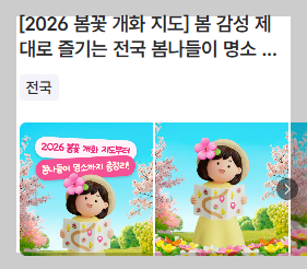 [2026 봄꽃 개화 지도] 봄 감성 제대로 즐기는 전국 봄나들이 명소 & 로컬 축제 총정리> 여행기사 :
