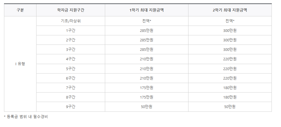 국가장학금 소득분위별 지급금액