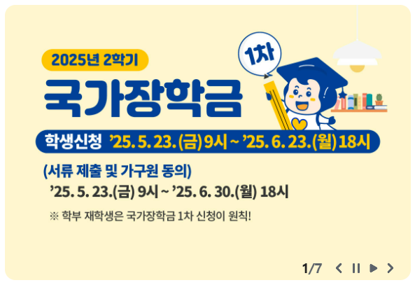 - 국가장학금 2025년 2학기 신청은 5월 23일부터 6월 23일까지