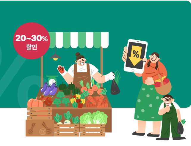 행사 기간 중 참여 전통시장에 방문해 국산 농축산물을 구매합니다. (채소, 과일, 쌀, 돼지고기, 닭고기, 한우 등)