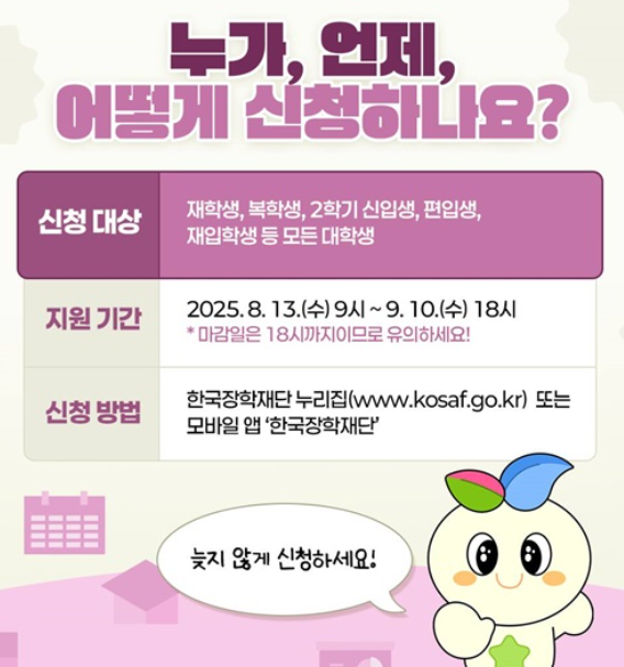 특히 2학기 신입생이나 편입생, 복학 예정자라면 반드시 이번 2차 신청을 통해 혜택을 받아야 하므로 기간을 놓치지 않도록 미리 준비한 후 신청하시길 바랍니다.